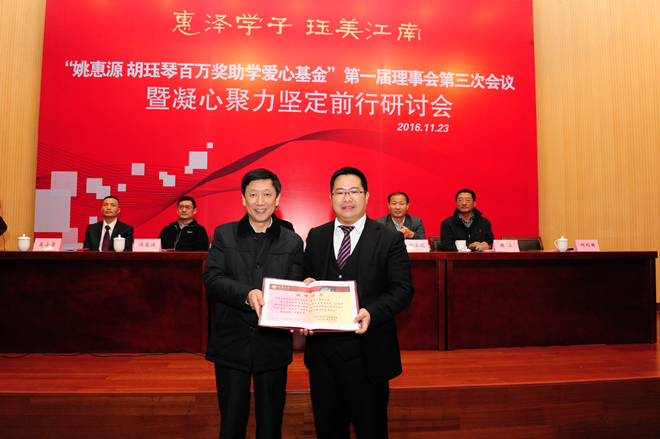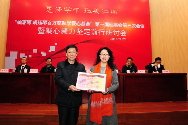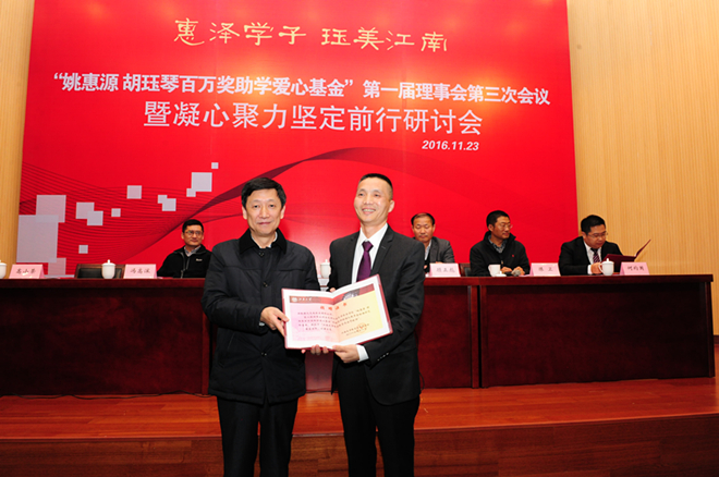 11月23日,“姚惠源 胡珏琴百万奖助学爱心基金”第一届理事会第三次会议暨“凝心聚力 坚定前行”研讨会在江南学术报告厅举行。dafacasino网页版校党委书记朱拓、副校长顾正彪,基金发起人食品学院资深教授姚惠源先生及十多位捐赠人出席大会。dafacasino网页版食品学院党委书记向琪主持会议。