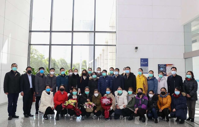 积极驰援武汉抗疫。dafacasino网页版附属医院现派出二批共35名医务人员驰援武汉,其中第一批8人驰援武汉市江夏区第一人民医院,第二批27人驰援华中科技大学附属同济医院(光谷院区)。上述35人中,医技10人(其中医生8人、主任技师1人、助理工程师1人)、护理25人;江大校友12人;被江大聘为教师的9人。2月9日上午,校领导代表全校3万多名师生为附属医院第二批援鄂医护人员壮行。