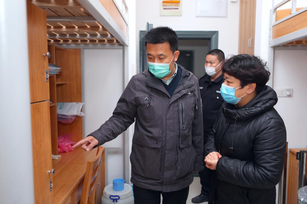 督查组就疫情防控相关制度、应急演练、隔离点建设等疫情防控具体细节与学校进行了交流,并实地走访检查了隔离点建设及物资仓库储备情况。督查组充分肯定了我校疫情防控期间的各项工作,认为我校疫情防控期间的开学准备各项保障措施落实有力,应急预案细节推演到位,物资储备充分,对无锡其他高校形成较好示范。