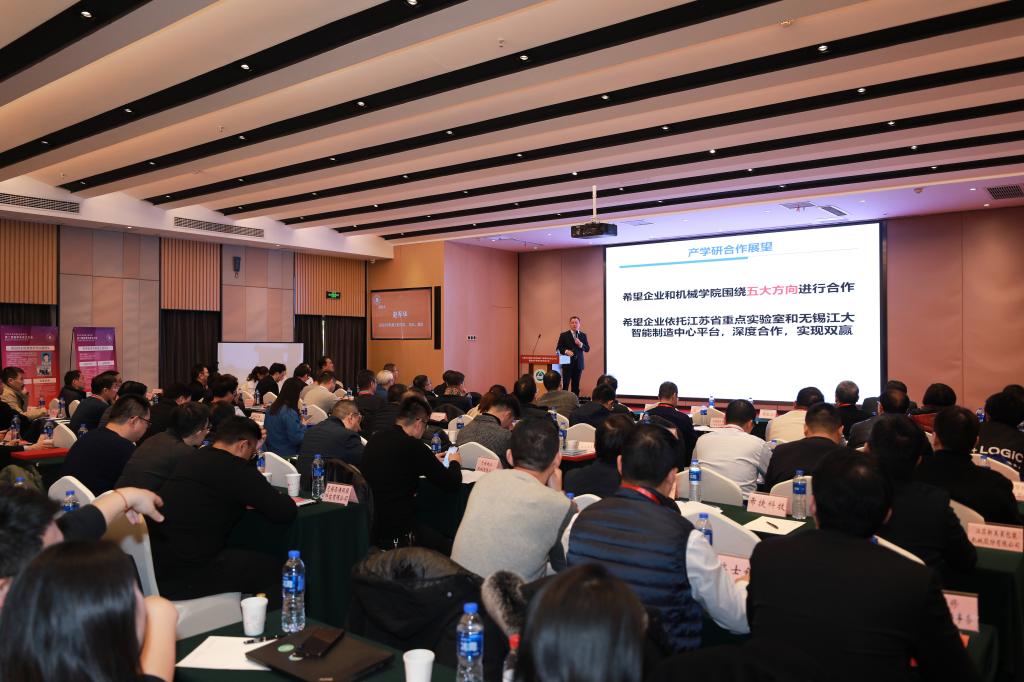 大会下半场进行大会主题报告。会议围绕机械行业相关政策、发展现状、企业需求、科技前沿,花溪君作了政府政策宣讲报告,中建材智能自动化研究院有限公司副书记薛根、合肥中辰轻工机械有限公司总经理查正旺、毅合捷汽车科技股份有限公司董事长刘全、无锡隆玛科技股份有限公司董事长杨朝晖、南京乐鹰商用厨房设备有限公司总经理赖夏荣等企业家做了企业需求报告;学院5位学科带头人教授分别就智能包装技术与装备、微纳制造技术与表面工程、智能检测技术与机器人工程、食品先进加工技术与装备、先进设计与智能制造等科研方向作了介绍报告。