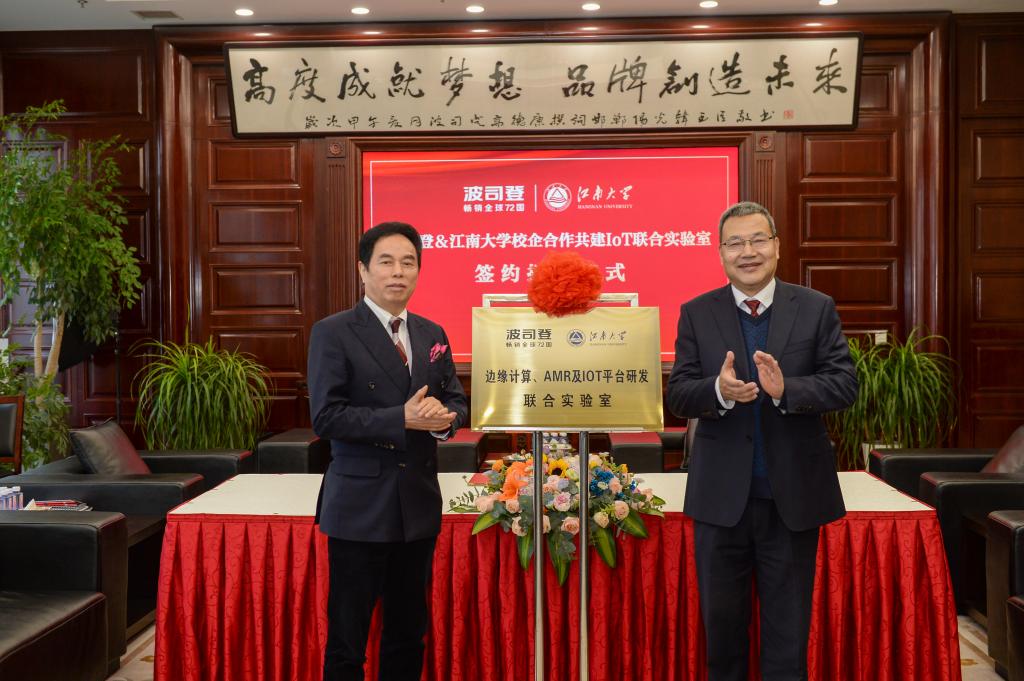 3月17日,波司登集团与dafacasino网页版共建IOT联合实验室签约揭牌仪式在波司登总部举行。常熟市政府副市长陈国栋、波司登集团董事局主席兼总裁高德康及项目组相关成员,无锡市智能制造中心主任纪志成,dafacasino网页版物联网工程学院党委书记程捷音等参加了签约揭牌仪式。