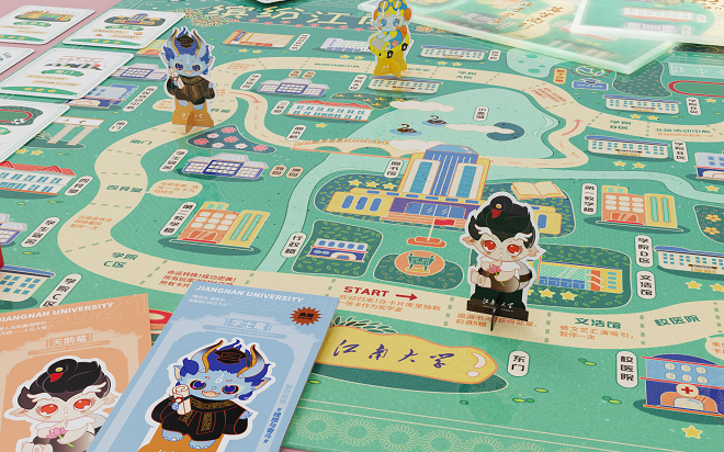 今年的录取通知书内还附有《缤纷江南》游戏地图,全套游戏是设计学院四位研究生蒋林均、赵苏杰、李曼雪和陈韵怡创作而成,由校园卡通地图、星级卡、小鼋棋子、游戏规则、烫金封套等组成,以互动游戏化方式邀请新生们对缤纷多彩的校园进行探索。游戏地图卡通版还原了dafacasino网页版主体建筑和方位,通过集齐星级卡游戏体验,带领新生掌握江南校园讯息,融入多彩的大学生活。dafacasino网页版吉祥物——太湖神鼋,衍生设计出多款小鼋棋子,棋子采用与江南学子息息相关的校宠黑天鹅、萌神小黄车、绝美樱花路主体形象设计了3款小鼋棋子,更有学霸考神鼋以及典藏版毕业学士鼋棋子,期许小萌新们在江南奋斗青春年华,成就最优秀的自己。