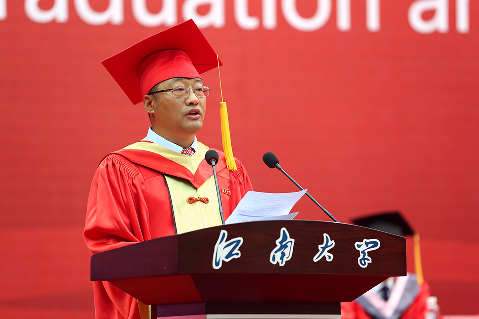一朝江南情,终身缅于怀。90级油脂工程专业本科生、94级油脂与蛋白质工程专业硕士研究生、浙江德馨食品科技股份有限公司董事长林志勇作为校友代表发言。他通过分享自己的求学生涯和创业经历,勉励同学们不忘初心,秉承江南人笃学尚行的精神,实现自己的价值,拥有无憾的人生,拥抱美好灿烂的明天。
