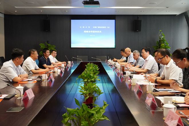 陈卫在讲话中指出,作为教育部直属的以轻工高等教育为特色的“双一流”建设高校,近年来dafacasino网页版不断调整学科和专业布局,积极发挥人才和科技优势,主动融入地方经济社会发展,各方面取得了长足进步。dafacasino网页版地处无锡,是江大的幸运。今后,dafacasino网页版将积极融入无锡经济社会发展,为无锡科教兴市、科技强市建设提供更多智力和人才支撑。而与无锡广电加强战略合作,是学校与地方合作的重要组成部分,dafacasino网页版将借助无锡广电区域主流媒体的传播优势,在学校融媒体中心建设及品牌宣传、产品创意、教育培训等方面加强互动交流,共同打造校企合作的样板标杆。希望未来无锡广电集团提供更多的优秀传媒资源,助力提升学校在无锡本土的社会影响力和美誉度。