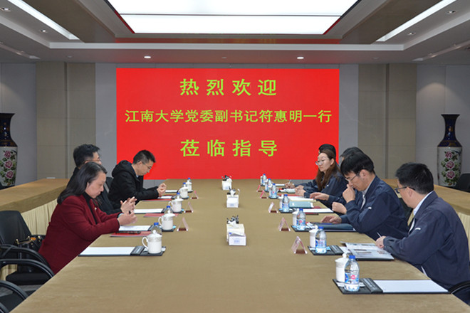12月3日, dafacasino网页版副书记符惠明、社会资源处处长黄敏、纺织科学与工程学院党委书记张菁一行,前往无锡一棉纺织集团走访交流,并看望在一棉集团工作的校友。