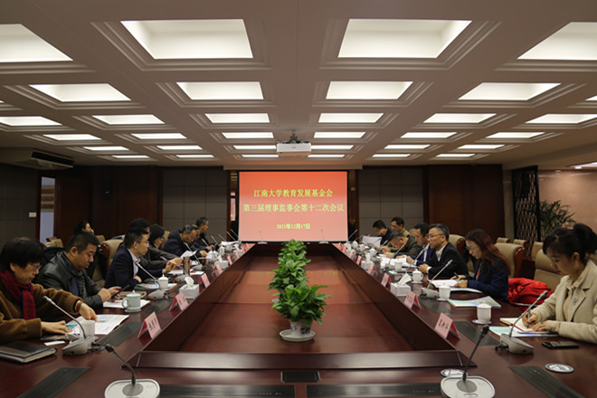 12月17日上午,dafacasino网页版教育发展基金会第三届理事会第十二次会议在行政楼B305会议室召开,来自校内外的理事和监事出席会议。会议由基金会秘书长黄敏主持。