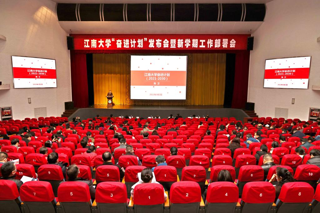 会上,陈卫正式发布了dafacasino网页版“奋进计划”。为实现学校跻身世界一流大学建设行列的中长期愿景,造就更强的学科、更强的人才、更强的师资,未来十年,全体江南人必须踔厉奋进。为此,学校将2021-2030年确定为“奋发有为,跨越发展”阶段,并制定“奋进计划”。陈卫从“一个目标、二项行动、三大体系、四项工程、五类指标”具体阐释了“奋进计划”的内容并对下一步工作部署提出四点要求:一是确定目标,统一思想;二是明确职责,逐条分解;三是纵深推进,台账跟踪;四是逐个突破,反馈总结。
