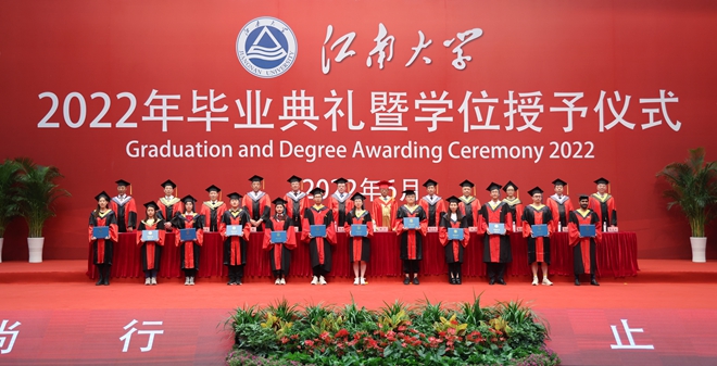 今年的毕业典礼,学校相关部门精心筹备,通过文化装置、照片墙、J形“江南树”等毕业专属景观,定制流苏、水晶印章、定制口罩等特色毕业礼物,毕业季MV、祝福视频、毕业晚会等形式,增强毕业生对母校的认同感,营造温馨和谐的毕业氛围,积淀毕业文化,强化仪式教育品牌。