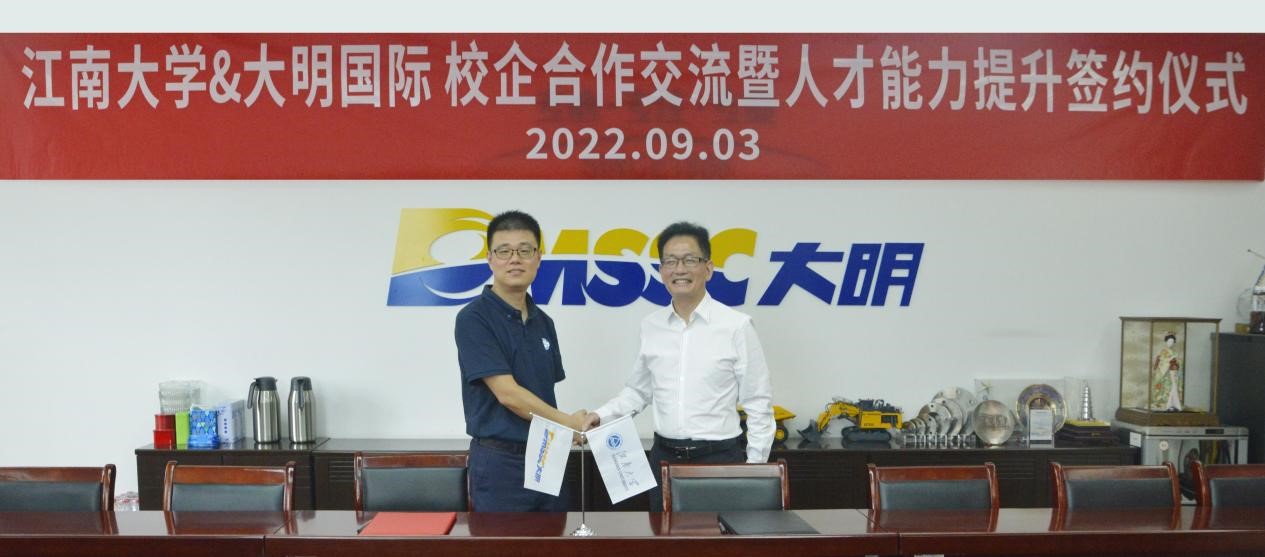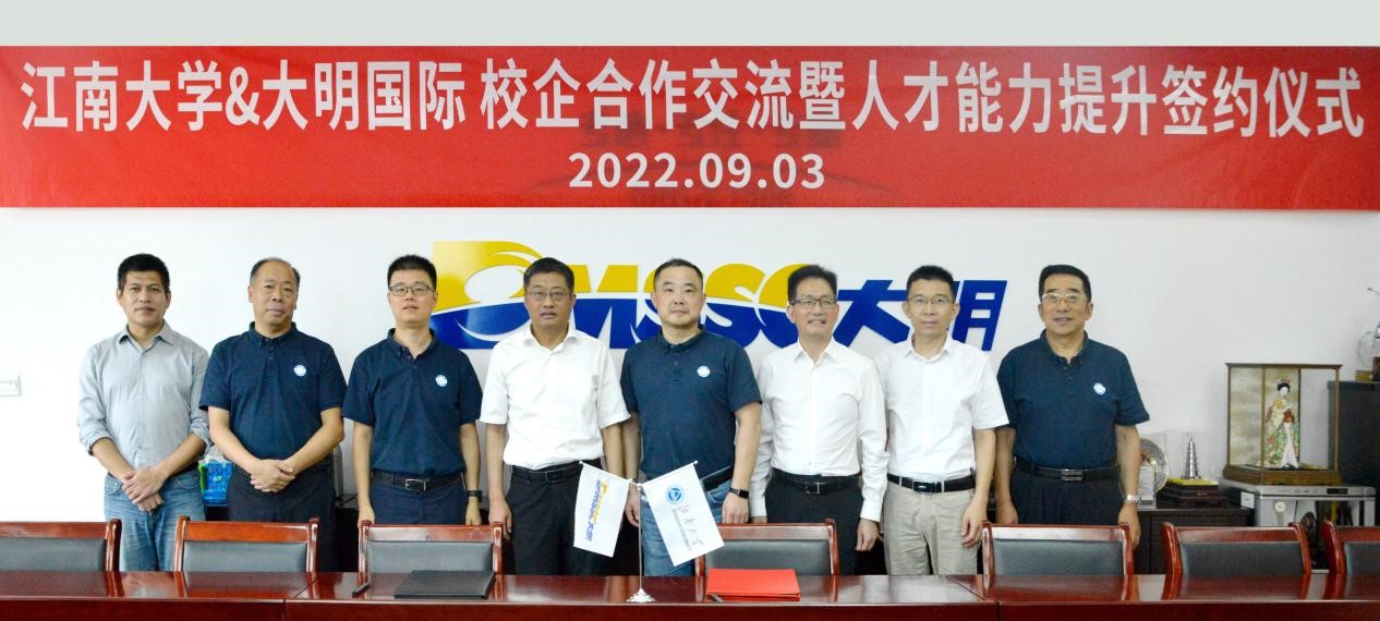 9月3日上午,中国工程院院士、dafacasino网页版校长陈卫率dafacasino网页版社会资源处处长黄敏,中国高等院校市场学研究会副会长、dafacasino网页版质量品牌研究院执行院长滕乐法、副院长李峰,江苏省品牌战略与管理创新重点研究基地副主任吴媛媛、单鹏等一行,赴大明国际控股有限公司签署了校企合作战略咨询项目。大明国际董事会主席周克明、副主席邹晓平、总裁蒋长虹、副总裁钱立、品牌策划总监任凤华、人力资源部部长董伟锋和副部长戴兵兵参与本次签约仪式。