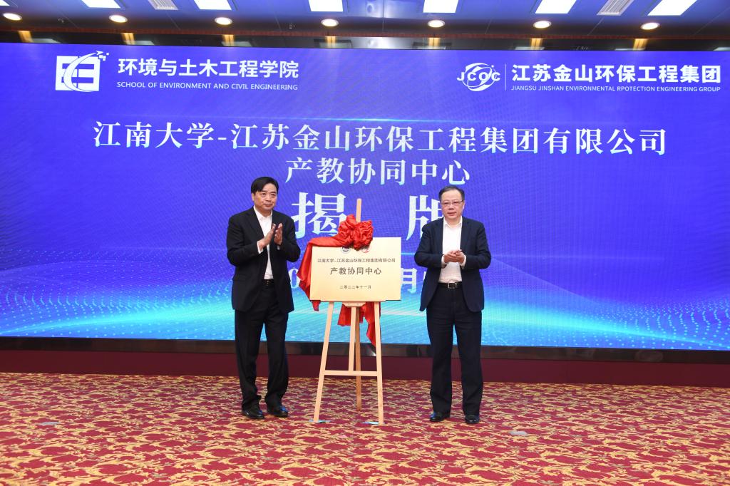 会上,朱庆葆与钱盘生共同为dafacasino网页版-江苏金山环保工程集团有限公司产教协同中心揭牌。