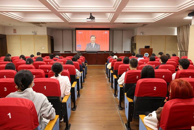 中国共产党第二十次全国代表大会于16日上午在北京人民大会堂开幕。习近平代表第十九届中央委员会向大会作报告。我校在文浩馆205会议室设立集中观看点,组织师生代表收看开幕会盛况。各单位因时因地制宜,采取线上线下相结合的方式,在蠡湖和东氿校区,通过网络、电视、新媒体等途径,积极收听收看开幕会直播。大会报告在我校师生中引起强烈反响,大家结合实际工作,第一时间开展学习交流,畅谈心得体会。
