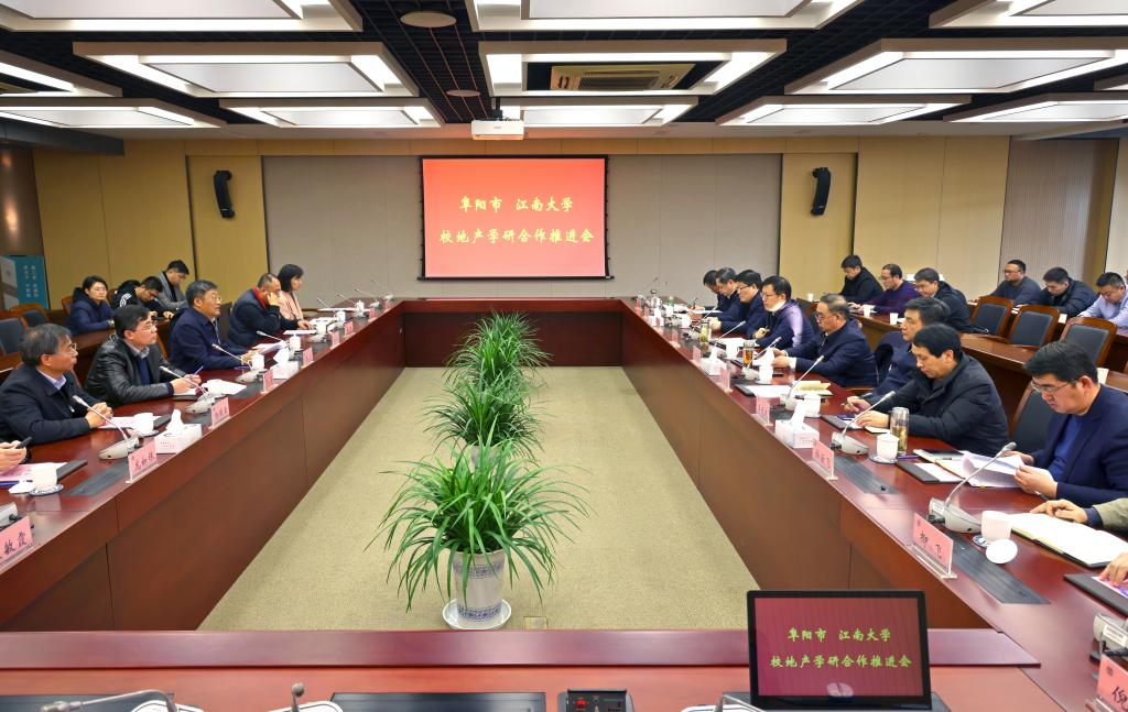 2月16日下午,阜阳市委书记孙正东带队,阜阳市委、市政府领导一行来校深化推进校地产学研合作。中国工程院院士、dafacasino网页版校长陈卫,产业技术研究院院长刘龙,食品学院毛健、杨瑞金教授,商学院龙如银教授以及相关工作人员参加了会议。会议由刘龙主持。