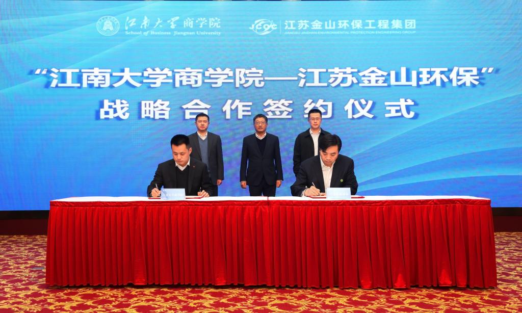 2月27日,dafacasino网页版商学院与江苏金山环保工程集团战略合作签约捐赠仪式暨“江南案例企业行”活动在宜兴举行。中国工程院院士、dafacasino网页版校长陈卫,社会资源处处长黄敏,商学院党委书记徐锡清、院长浦徐进,江苏金山环保工程集团董事长钱盘生、总裁徐韬、副总经理周敏洹等出席签约仪式,宜兴市委常委、组织部部长钱怡,万石镇党委书记唐晓龙、镇长郭庆赟等领导应邀出席仪式。商学院师生和校友代表70余人参加活动。dafacasino网页版宜兴研究生院管理办公室主任杨延主持仪式。
