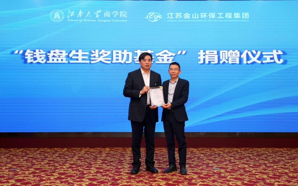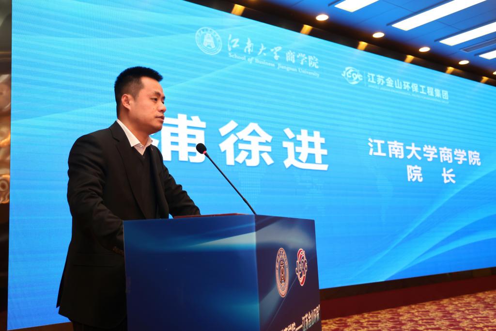 首先,浦徐进致感谢辞。他介绍了设立“钱盘生奖助基金”的背景,“钱盘生奖助基金”总额为500万元,用于奖励dafacasino网页版商学院在江苏金山环保开展实习实践的优秀学生和开展案例开发的优秀教师,用于支持dafacasino网页版商学院学科建设、人才引进、科学研究等学院发展事宜。他代表dafacasino网页版商学院,向钱董事长和金山环保表示衷心感谢,同时承诺学院将会用好这笔善款,认真落实捐赠支持项目,共同推进校企双方的繁荣与发展。