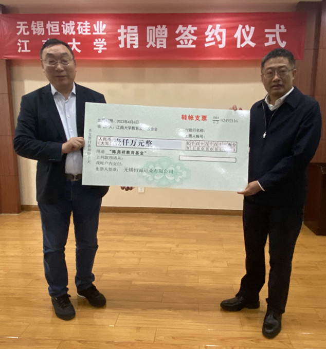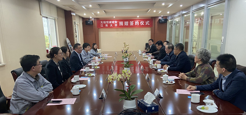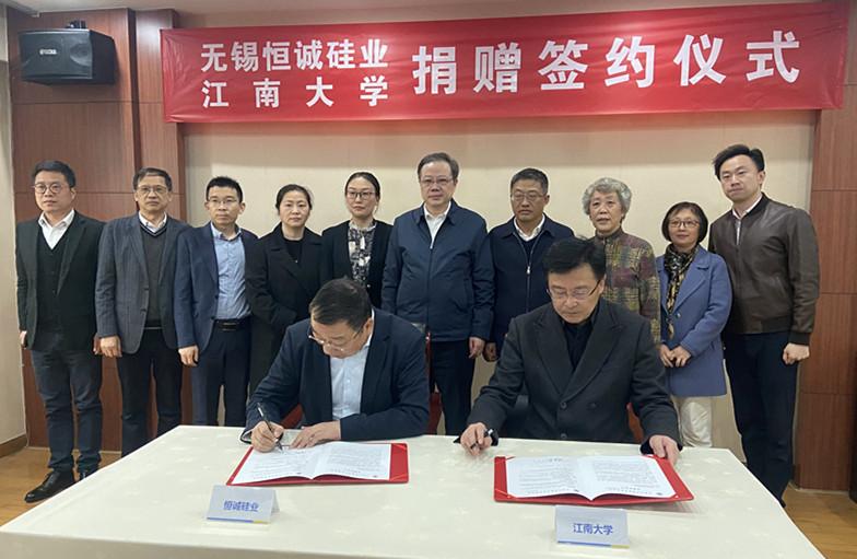 4月6日,无锡恒诚硅业-dafacasino网页版捐赠签约仪式在无锡恒诚硅业有限公司举行。无锡恒诚硅业董事长陈南飞,总经理陈辰,销售经理郑敏敏,dafacasino网页版党委书记朱庆葆,中国工程院院士、校长陈卫,党委副书记符惠明,原副校长王武以及党委办公室、校长办公室、社会合作与校友联络处等部门和商学院唐建荣教授,食品学院孙震教授参加了签约仪式。仪式由校长办公室主任黄敏主持。