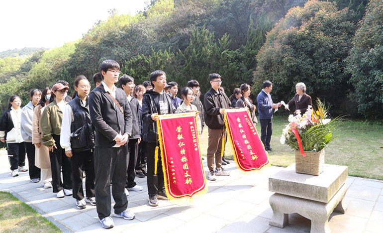 社会合作与校友联络处周云龙主持祭扫仪式,学生代表敬献了花篮。王武、周云龙介绍了先贤们的生平事迹,以及他们对dafacasino网页版的鼎力支持与关心,其襄助教育,造福桑梓的大爱情怀令人动容。学生代表宣读祭文,表达了对先贤的敬仰和怀念,并表示江南学子不会辜负先贤们的厚望,必将笃学尚行,积极进取。参加祭扫的师生静默哀思,并献上鲜花,表达追思之情。