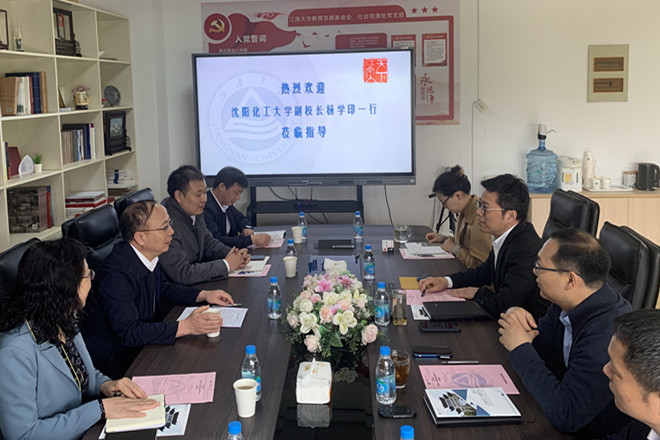 4月24日上午,沈阳化工大学杨学印副校长率校友总会办公室主任王成琛、化学工程学院党委书记战君等一行来校,就校友会、基金会工作与我校开展交流。社会合作与校友联络处处长周云龙、副处长任增亮及相关科室负责人参加了座谈。