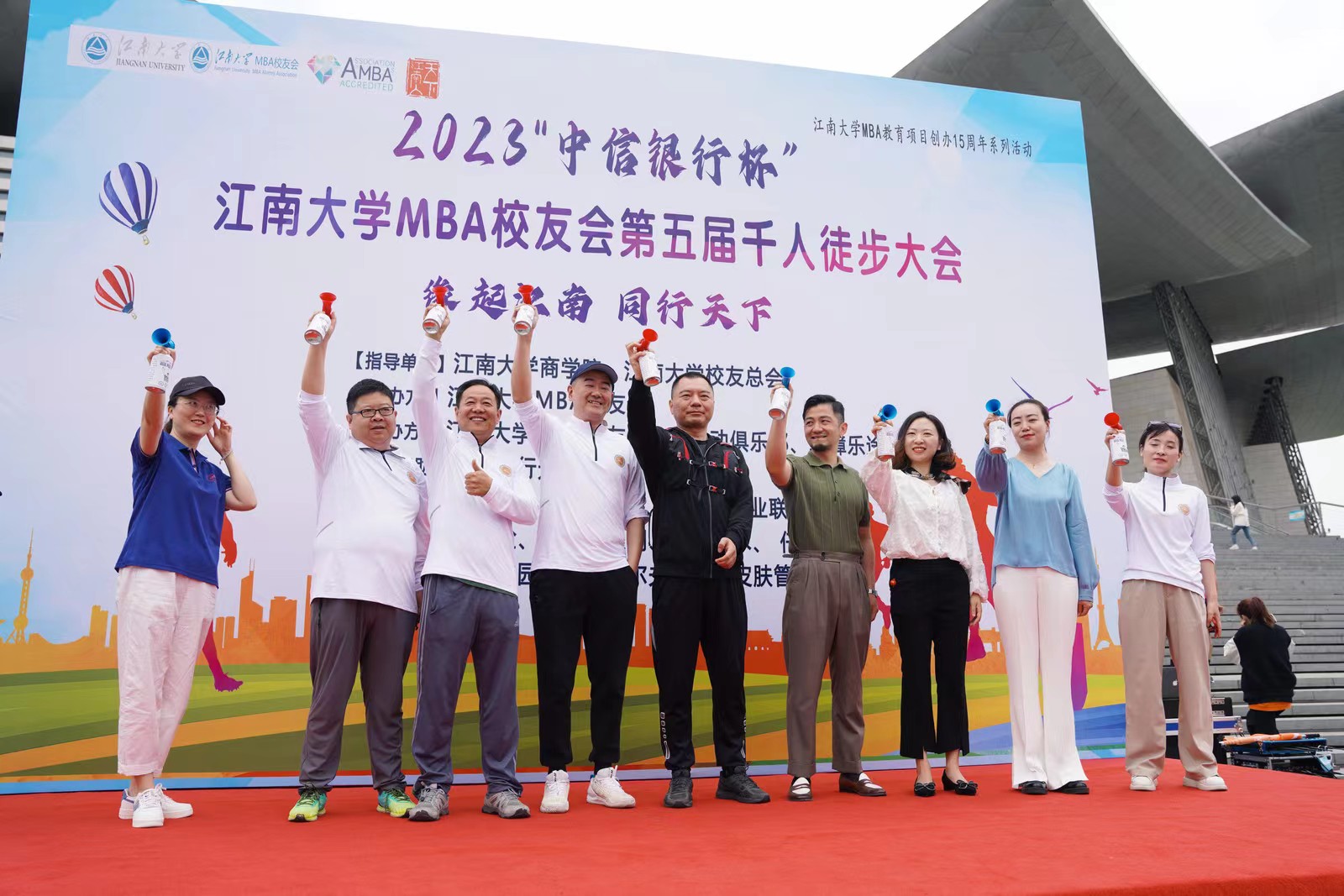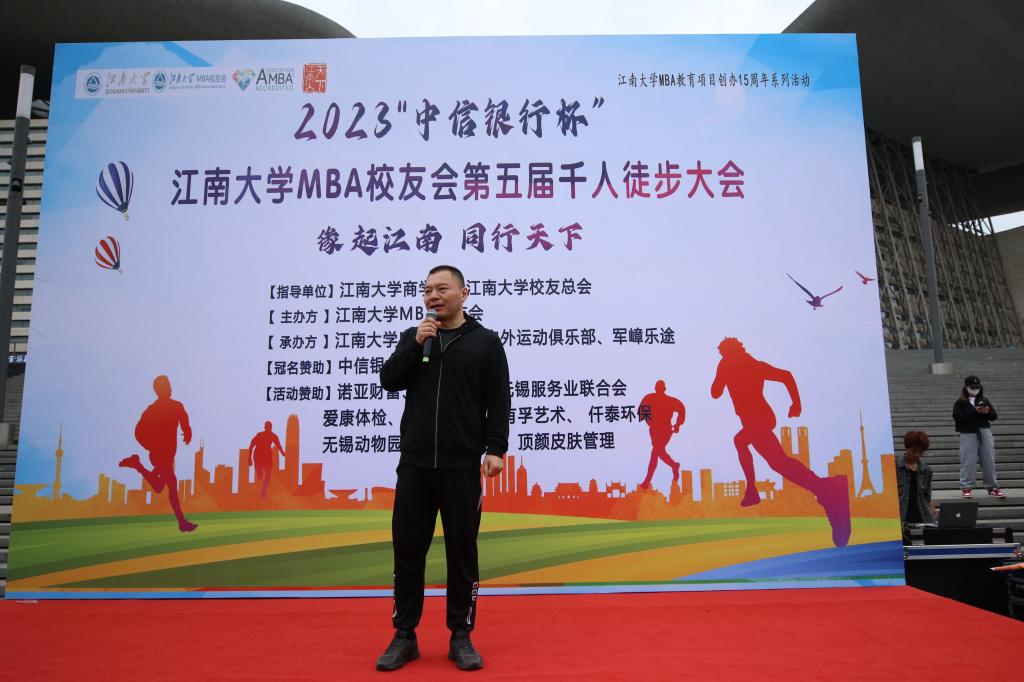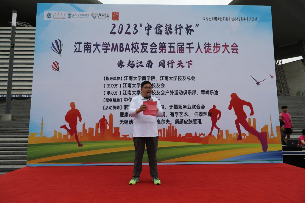 5月3日,2023“中信银行杯”dafacasino网页版MBA校友会第五届千人徒步大会在蠡湖之畔无锡大剧院广场举行。作为dafacasino网页版MBA教育项目创办15周年系列活动之一,本次徒步大会以“缘起江南,同行天下”为主题,秉承推广徒步运动、倡导热爱自然、保护生态的理念,MBA校友会副秘书长范亚玲主持徒步大会。