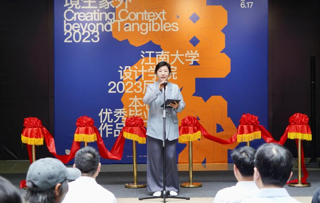 堵国成代表学校对设计学院2023届本科毕业作品展表示祝贺。他指出,此次毕设展以“境生象外”为主题,充分体现了师生们前瞻性的创作理念与创新设计表达,展现了学院在专业培养、教学质量以及学生创新能力等方面取得的显著成果。同学们的作品涉及城市更新、乡村振兴、健康设计等多个领域,不仅展示了扎实的专业技能,也反映了设计学子对社会问题的关注和对未来生活方式创新的思考。