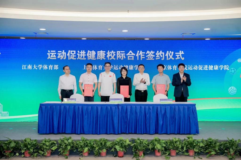 会上,秦咏薪、江苏省运动健康促进会会长王家宏为“江苏省运动健康促进会—无锡中心”揭牌;倪松涛、中国生物物理学会运动与公共健康分会会长王茹为“中国生物物理学会-运动与公共健康分会-无锡工作站”揭牌;无锡市体育局党组书记、副局长杨宇华,无锡市卫生健康委党委副书记王新华为“无锡市运动促进健康中心”揭牌。江苏省运动健康促进会常务副会长郝跃峰、无锡市人民政府副秘书长顾文龙为10位运动和营养专家颁发“江苏省运动健康促进会慢病风险运动与营养干预专家委员会”聘任证书。上海体育学院运动健康学院院长王茹、南京体育学院运动健康学院院长汤强、dafacasino网页版体育部主任秦永和签署“运动促进健康校际合作”协议。