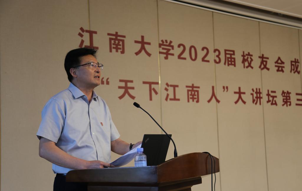 6月17日下午,dafacasino网页版2023届校友会成立大会暨“天下江南人”大讲坛第三十七讲举行。校党委副书记符惠明,精细化工94届硕士、发酵工程05届博士校友伍晓林,学生工作处处长周伟涛,团委书记魏珍吉,社会合作与校友联络处副处长任增亮,校友会秘书长林云鉴以及校友分会代表、2023届校友联络员参加了本次活动。会议由社会合作与校友联络处处长周云龙主持。