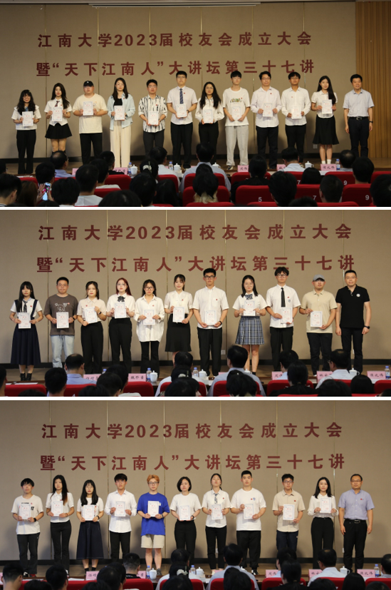 符惠明对各位同学圆满完成学业表示衷心祝福,同时欢迎同学们加入“天下江南人”的行列。他指出校友与学校是一个休戚相关的共同体,即情感共同体、荣誉共同体和发展共同体。他回顾校友联络员聘任活动自2011年开展以来取得的成效,共计3662位校友联络员承担着母校和校友间的联系桥梁作用,为母校和校友间的联系沟通发挥了重要的服务作用。2022年成立届次校友会,则是对以往以地域、专业、行业维度建设校友会的补充。他强调学校一贯高度重视校友工作,校友会工作也取得了显著的成效。他希望大家一是要把工作做“通”,要做好校友的长期联络工作,保持班级、年级的凝聚力,及时更新、整理完善班(年)级校友通讯录,保持与母校及校友会通畅的联系;二是要把工作做“细”,要及时关注校友动态,向校友会反馈校友取得的成就,协助宣传报道校友的优秀事迹,同时关注校友需求,及时反馈给母校校友会;三是要把工作做“活”,希望校友们在实现个人理想的同时,一如既往地关注和支持母校发展,积极融入各地校友组织,积极组织或参与值年返校、校庆等活动。