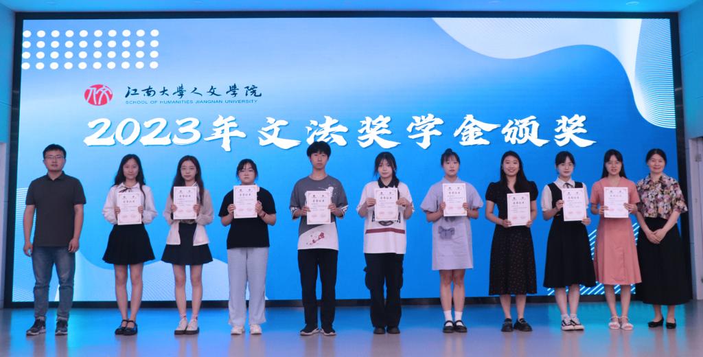 紧接着进行人文学院2023年文法奖学金颁奖仪式,获奖同学依次上台领奖,现场嘉宾领导为获奖同学和团队颁发证书,并合影留念。在企业家寄语环节,费晓燕对同学们在公益服务上的奉献与探索表示肯定,从“行知”二字谈起,号召青年学子“行为知之始”,公益要从实践做起,在行动中不断加强自己的认知,提高自己的服务意识。随后与会嘉宾为人文学院2023年基层就业志愿者代表赠送鲜花和礼物,希望志愿者们在基层继续发光发热。