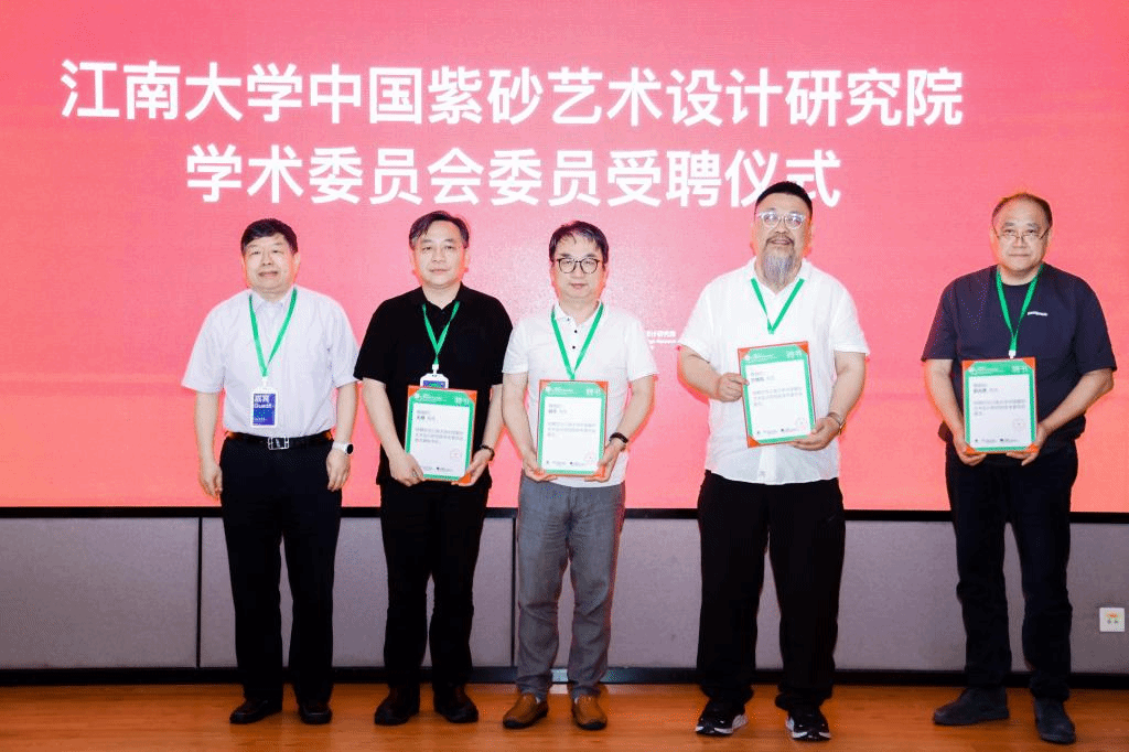 设计学院教授邓嵘和吴祐昕诵读了由设计学院副教授代福平撰写的《弘陶馆记》。活动期间,同步举行了dafacasino网页版中国紫砂艺术设计研究院学术委员会与理事会成立仪式暨客座教授和兼职硕士生导师授聘、大师工作室授牌仪式。