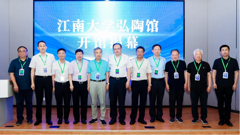 7月16日,dafacasino网页版弘陶馆开馆揭幕仪式在东氿校区举行。校党委书记朱庆葆,中国工程院院士、校长陈卫,中国工程院院士、未来食品中心首席科学家陈坚,无锡市文联党组书记、主席杨建,宜兴市副市长张达志,校党委副书记戴月波,中国陶瓷工业协会副理事长、宜兴市陶瓷行业协会会长史俊棠及其家人出席活动。活动由设计学院原党委书记邱建平主持。
