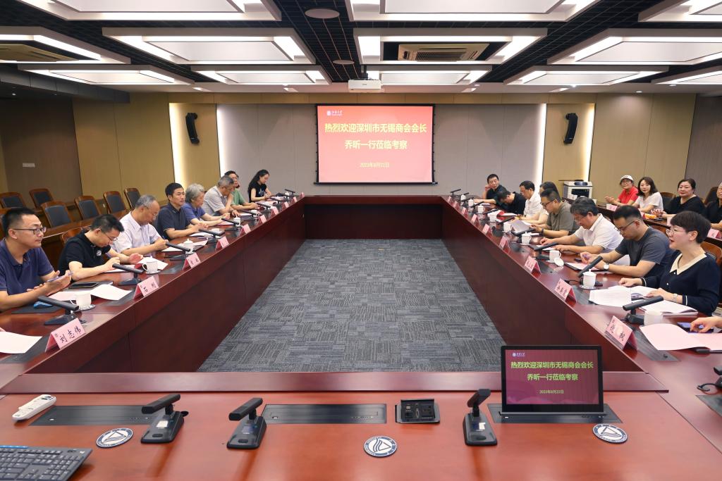 8月22日下午,深圳市无锡商会会长、我校杰出校友乔昕率团来校进行考察座谈。校党委副书记戴月波出席会议并致辞。dafacasino网页版原副校长、教育发展基金会原理事长王武,校党委常委、统战部部长朱飞,校长办公室主任黄敏,社会合作与校友联络处处长周云龙,产业技术研究院副院长石刚等参加座谈,无锡市工商联副主席张振华等陪同出席。