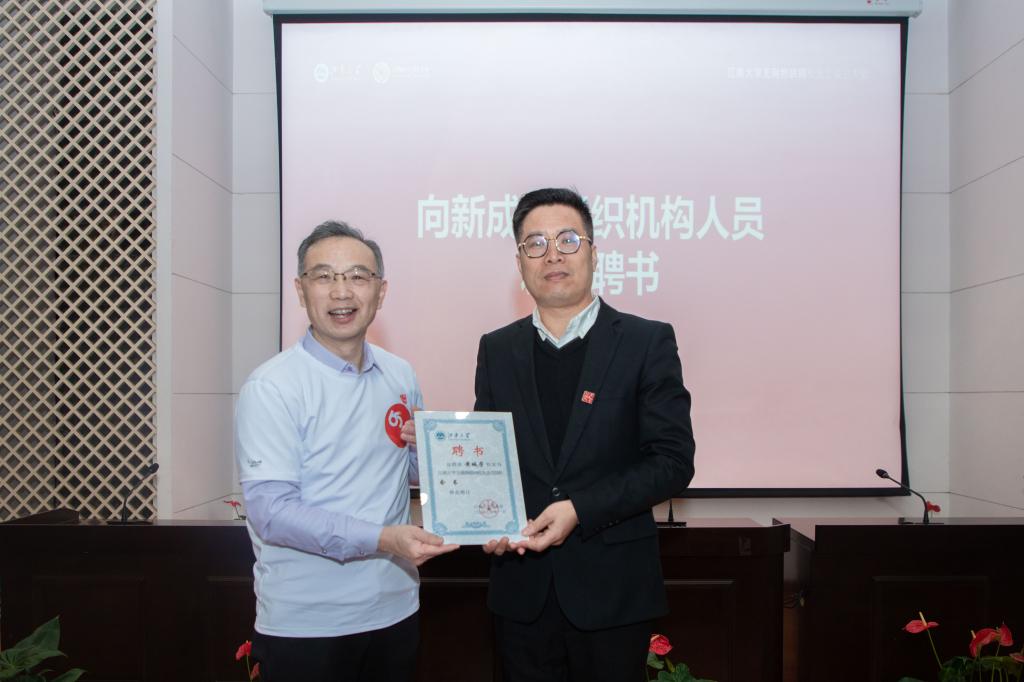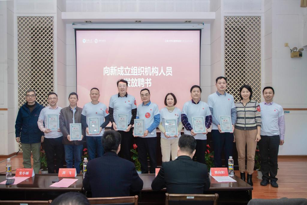 自动化95级校友、无锡物联网校友会筹备组秘书长刘韻汇报大会筹备情况。周云龙宣读《关于同意召开dafacasino网页版无锡物联网校友会(团体)成立大会的批复》。大会审议通过了无锡物联网校友会组织机构成员名单,倪松涛向新当选会长黄城芳授牌,周云龙为新当选秘书长刘韻授旗,与会领导为校友会组织机构成员颁发聘书。