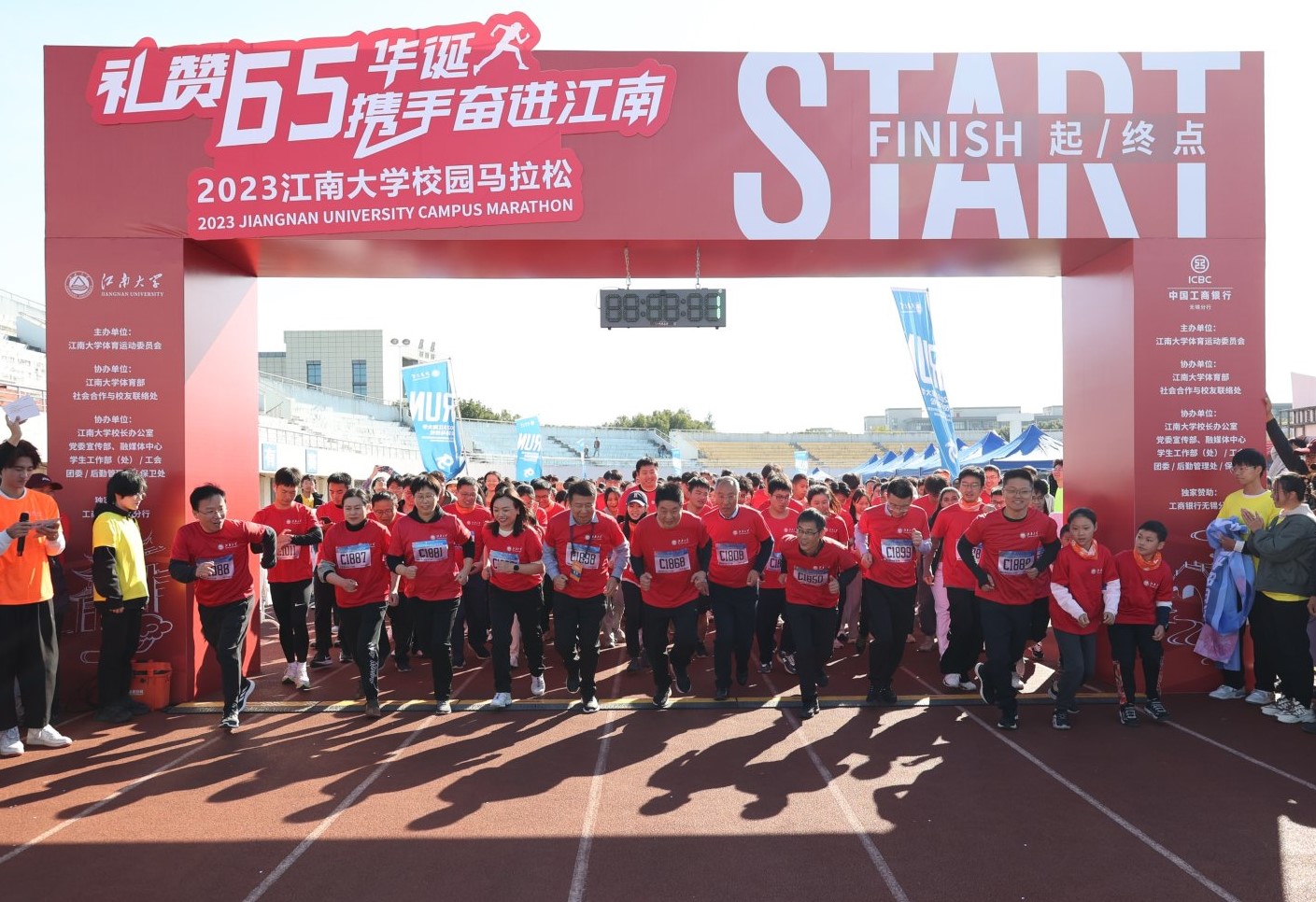 11月18日,2023dafacasino网页版“礼赞65华诞,携手奋进江南”校园马拉松在蠡湖校区举办。本次马拉松由dafacasino网页版体育运动委员会主办,体育部、社会合作与校友联络处承办。3350名在校师生与全国88个校友分会的校友代表们相聚江南,在碧空艳阳下共同奔跑,感受江南体育文化,传承江南体育精神,为dafacasino网页版65周年华诞送上祝福。