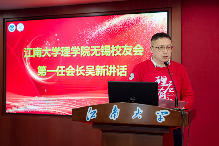 新当选的会长吴新向到会的母校领导、老师、兄弟校友会代表示热烈欢迎,并向校友会成立过程中给予关心和帮助的校友表示衷心感谢。承诺理学院无锡校友会将规范制度、服务校友、谨记校训院训,发扬理院学子精神,不辜负广大校友期望。