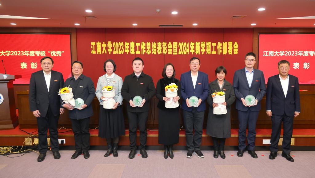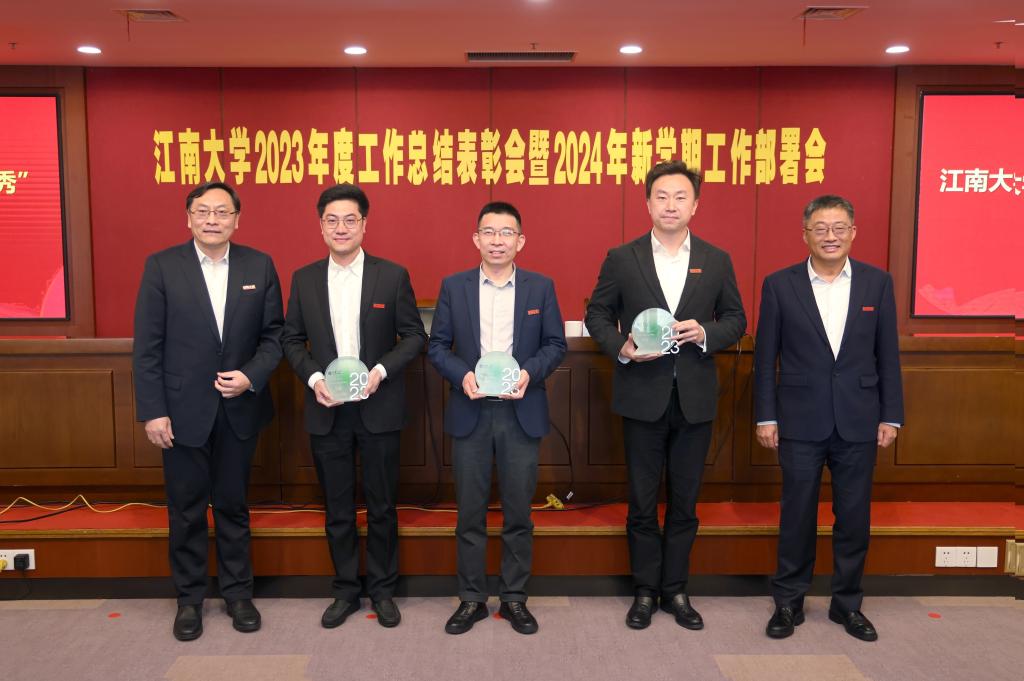会议期间,吴正国、陈卫为2023年度考核“优秀”教学科研单位、党政管理部门颁发奖牌。