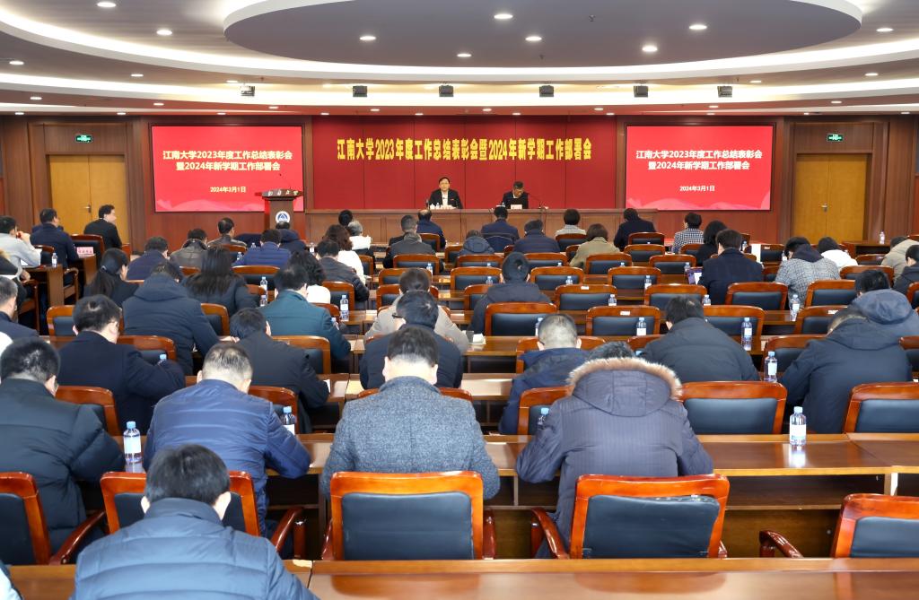 陈卫对2024年学校党政重点工作作了详细部署。他指出,2024年是中华人民共和国成立75周年,是加快推进教育强国建设的拓局之年,也是学校抢抓新阶段新机遇、实现新奋进新发展的关键之年,要坚持以习近平新时代中国特色社会主义思想为指导,全面贯彻党的二十大精神,深入学习贯彻习近平总书记关于教育的重要论述和关于江苏工作的重要讲话重要指示精神,答好“教育强国、江南何为”的时代命题,为全面推进中华民族伟大复兴作出新的更大贡献。