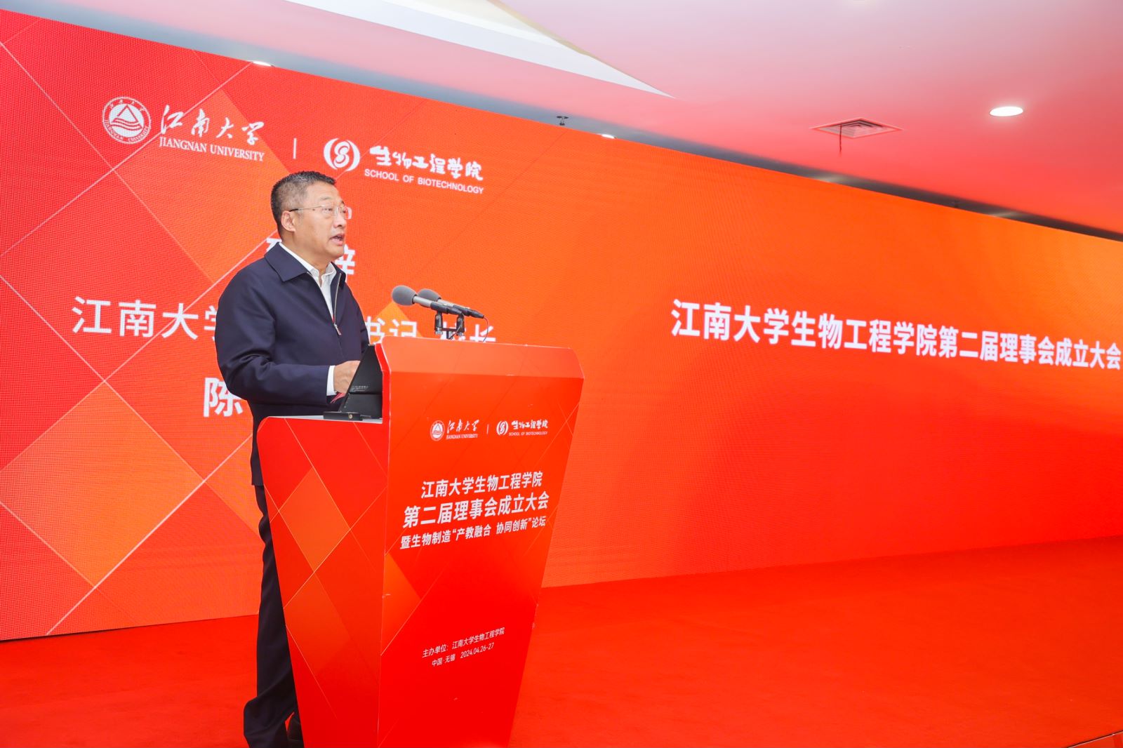 新一届理事会名誉理事长季克良在会上讲话。他首先对生物工程学院第二届理事会的成立表示热烈祝贺。作为发酵1959级校友,他回顾了六十年前在无锡轻工学院的求学岁月和学科发展历史。他以茅台和dafacasino网页版的合作为例,期待借助理事会平台,将行业实际需求与学校人才、科研等优势精准对接,培养更多优秀人才,产出更多创新成果,为行业高质量发展注入源源不断的动力。
