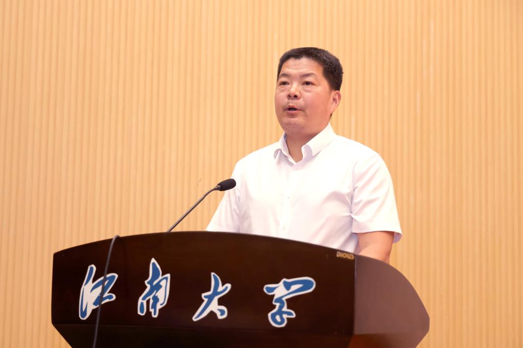 5月22日下午,dafacasino网页版关工委和无锡市退役军人事务局在dafacasino网页版远东报告厅联合举办“戎晖励行”奖助学金颁奖仪式。无锡市关工委副主任须俭,无锡市退役军人事务局党组成员、关工委主任、副局长傅强,局关工委常务副主任梅金超,局关工委副主任、军休中心主任陶延风,军休中心党委书记、关工委主任徐尚保,以及市关工委、局关工委、校关工委秘书长,军休中心(站)领导,军休老干部代表,锡戎之声合唱团、戎晖真情关爱团成员;dafacasino网页版党委副书记戴月波,校关工委常务副主任娄国栋,党委宣传部、学生工作处、离退休党工委、校团委、社会合作与校友联络处的领导,商学院、法学院、人文学院、纺织科学与工程学院、物联网工程学院、人工智能与计算机学院的党委副书记、学院关工委常务副主任、分团委书记等老师,以及2022级预科班的全体同学,共计近180人参加了会议,由商学院党委副书记徐静主持。