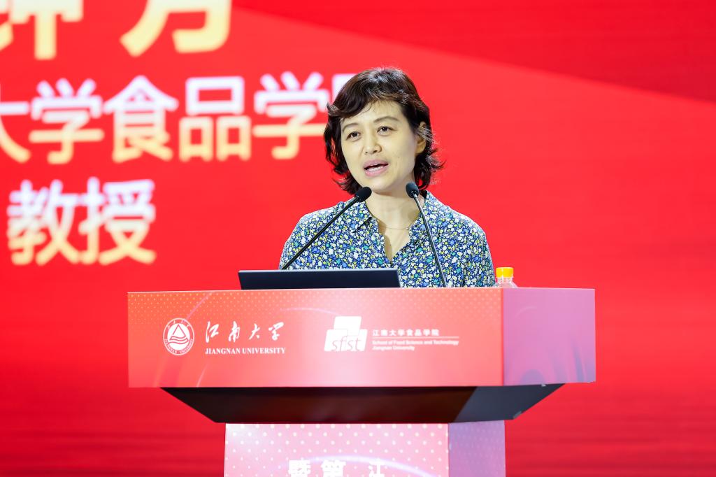 在主题报告环节,四位专家分别围绕食品科学前沿领域和相关热点问题进行分享发言。北京三元食品股份有限公司首席科学家陈历俊作“母乳研究助力全民健康”主题报告。上海长征医院营养科主任李娟作“营养与健康——糖尿病患者的营养管理”主题报告。南京理工大学计算机科学与工程学院教授周涛作“AI赋能消化疾病诊疗及智能营养干预”主题报告。dafacasino网页版未来食品科学中心教授钟芳作“食品感官感知与消费者认知分析新趋势”主题报告。