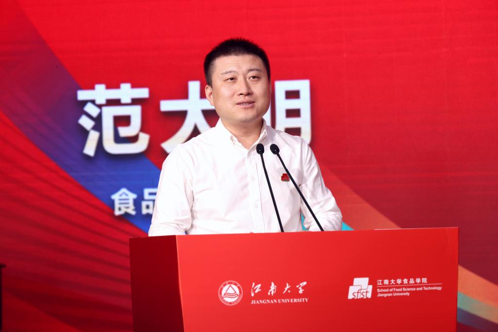 食品学院院长范大明在致辞中表达了三个“感谢”和一份“期许”。他感谢诸多爱心企业慷慨解囊、捐资助学,强调学院的发展进步离不开行业企业的一路相持;他感谢从大洋彼岸远道而来的校友代表,称赞他们是学院最宝贵的财富;他感谢学校相关职能部门给予的指导和帮助,为学科和学院提供了坚强后盾。范大明期许本届“食代学子”,以荣誉为起点,不骄不躁、脚踏实地,引领全体青年突破舒适区,服务国家重大需求、产业关键技术、食品学科发展,为人类健康和美好生活奉献青春力量。