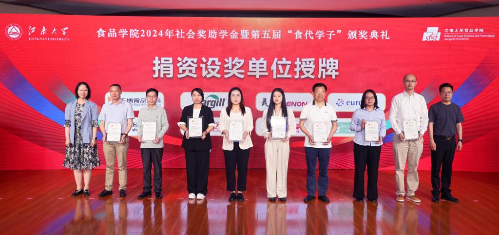 党委学生工作部部长周伟涛宣读社会奖助学金获奖名单。2024年,食品学院共评选出234名获奖学子,奖励总金额高达100万元。设奖单位代表和相关职能部门领导分别为荣获“朱贻荪奖学金”“北美校友会创新奖学金”“天博奖学金”“嘉吉菁英奖学金”“奥特奇奖学金”“翼邦奖助学金”“光明奖助学金”“美农希望之星奖学金”“欧陆英才奖学金”“欣融奖学金”“大咖国际奖助学金”“喜家德奖助学金”“中集安瑞醇奖学金”“苏州丰倍‘三全育人’奖学金”的同学颁奖。
