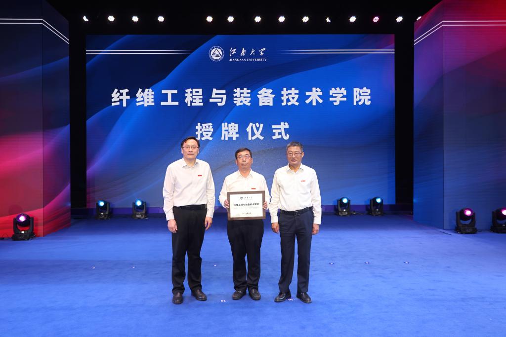 吴正国、陈卫为纤维工程与装备技术学院授牌