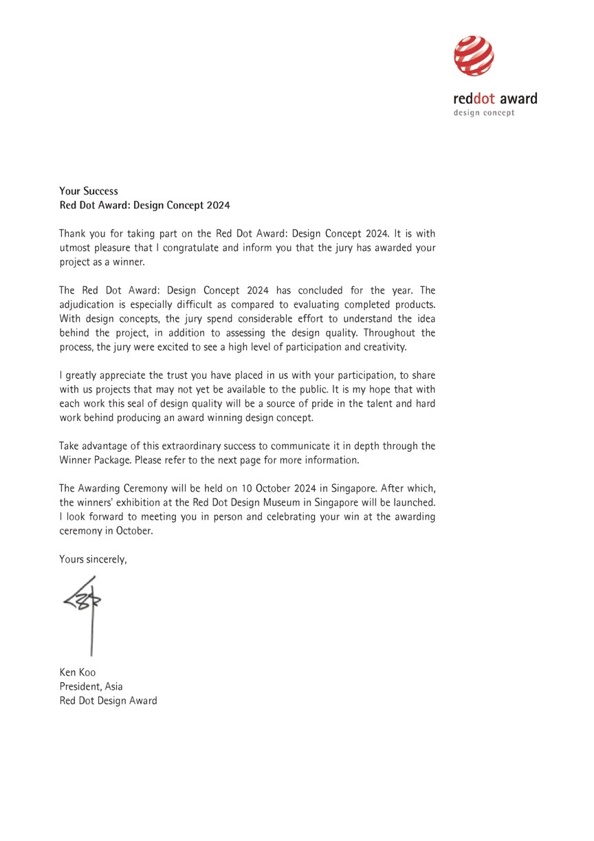 红点设计概念奖(Red Dot Award: Design Concept)是国际设计界公认的重要奖项,自2005年设立以来,致力于发现并表彰新的设计概念和创新成果,为未来优质产品的诞生奠定基础。时至今日,该设计奖已成为专业水平高、含金量足、用以评估及表彰优秀设计作品的最重要的国际平台之一。