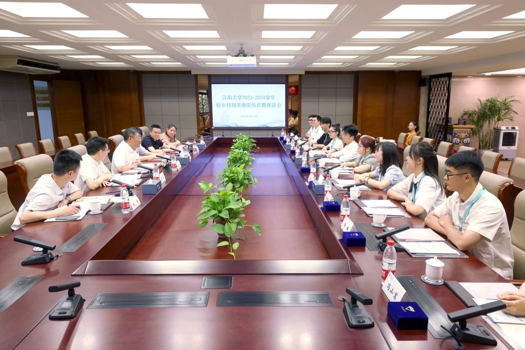 认真听取大家发言后,陈卫与获奖同学就未来发展方向进行了深入交流。他高度评价了本届“校长特别奖”获奖学生的突出成绩,代表学校向获奖者表达祝贺,并希望发挥榜样示范作用,在努力奋进中当好表率。同时,陈卫对学生提出了三点殷切期望:一是学好专业知识,增强专业技能。鼓励学生们不断拓展学习视野,提升学习效率和能力。珍惜每一个学习的机会,努力做到知行合一,理论联系实际,切实提升自己。二是弘扬奋斗精神,珍惜时代机遇。勉励学生们保持艰苦奋斗精神,培养高尚道德情操,树立远大志向,追求卓越,不断进取。三是心怀家国情怀,服务社会大众。希望学生们有强烈的社会责任感和使命感,主动参与社会实践,关注国家发展,积极投身到各行各业,为国家和社会的发展献计献策。能够以实际行动,书写无愧于时代的青春篇章,做不负韶华、不负时代、不负人民的新时代江南人。