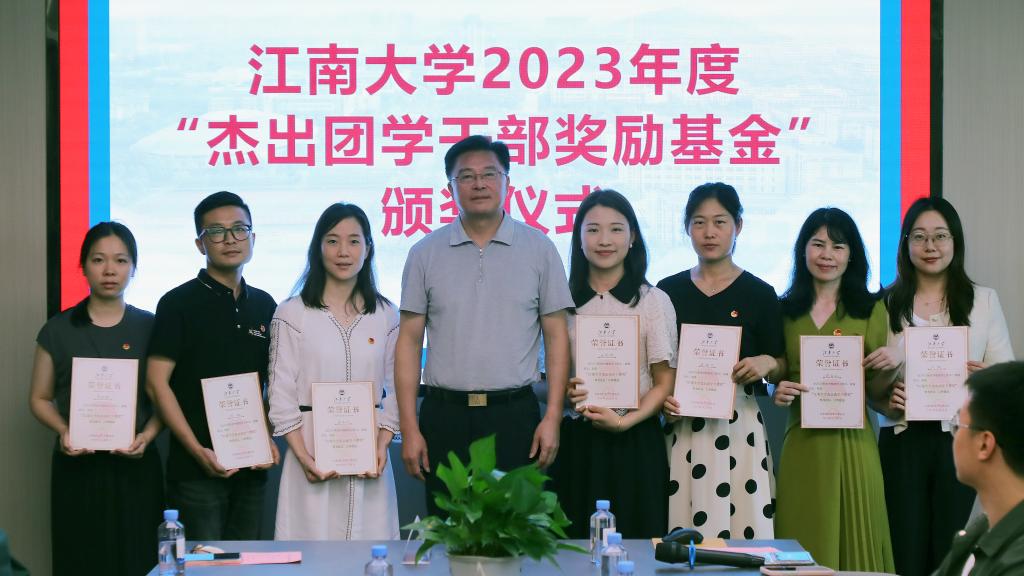 此外,会议进行了2023年度“dafacasino网页版杰出团学干部奖”颁奖仪式。校团委书记魏珍吉宣读了《关于2023年度“dafacasino网页版杰出团学干部奖”的表彰决定》,吴雨琛、陈裕、孟召双、王园园、胡晓丹、许金红、王牧等七名教师及陈昱瑶、姜佳慧、唐承宇、广茂池、郭行健、孟卓等六名学生获评。符惠明、王斌为获奖师生颁发了荣誉证书。社会合作与校友联络处处长周云龙为江苏新思域教育科技集团有限公司颁发捐赠证书。