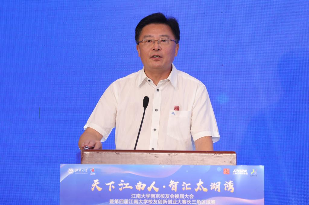 6月29日下午,dafacasino网页版南京校友会(团体)换届大会暨第四届dafacasino网页版校友创新创业大赛长三角区域赛在宁顺利召开。dafacasino网页版会长符惠明,原副校长王武,社会合作与校友联络处、生物工程学院、纺织科学与工程学院、资产管理经营有限公司等部门(学院)主要负责人,以及来自安徽、浙江、上海、镇江、常州、无锡、苏州、扬州等兄弟校友会代表,南京新老校友代表等共150余人参加会议,大会由翁玮校友(精化98)主持。