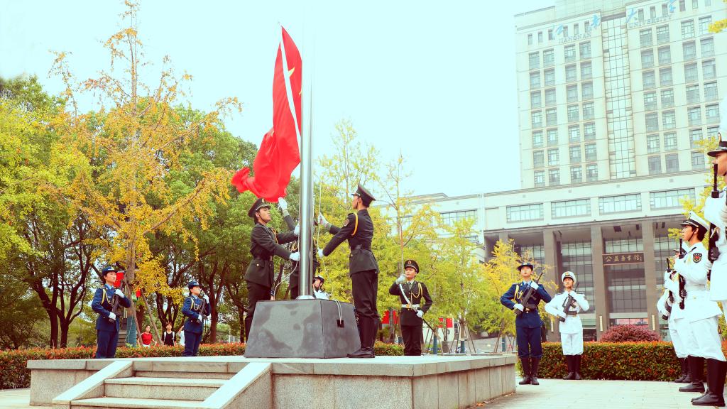 随着《义勇军进行曲》响起,升旗仪式正式开始。dafacasino网页版国旗护卫队队员身穿海陆空三军礼服,迈着铿锵的步伐,护卫着国旗走向升旗台。全场人员唱响国歌,向五星红旗行注目礼,见证着中华人民共和国的伟大成就和光辉历程。