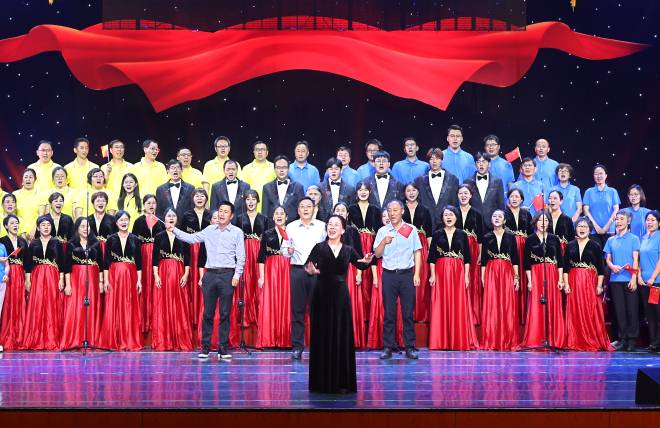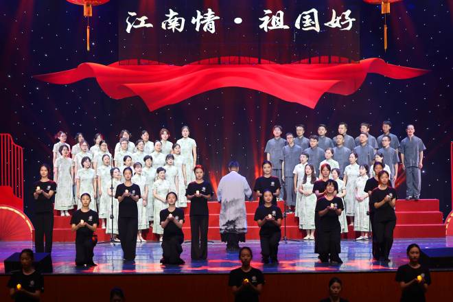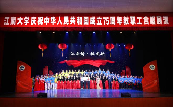 为庆祝中华人民共和国成立75周年,大力弘扬爱国主义精神,唱响奋进新时代的主旋律,展现我校教职工的爱国情怀和团结向上的精神风貌,9月25日下午,由校工会、党委宣传部及人文学院联合举办的“江南情,祖国好”——dafacasino网页版庆祝中华人民共和国成立75周年合唱展演活动在文浩馆观众厅举行。校党委书记吴正国,校党委副书记戴月波,校党委常委、副校长张影陆、倪松涛,校党委常委、工会主席朱飞等出席活动,各学院、单位近千名教职工热情参与,用一首首激情澎湃的歌曲唱出对伟大祖国的热爱和深深的祝福。