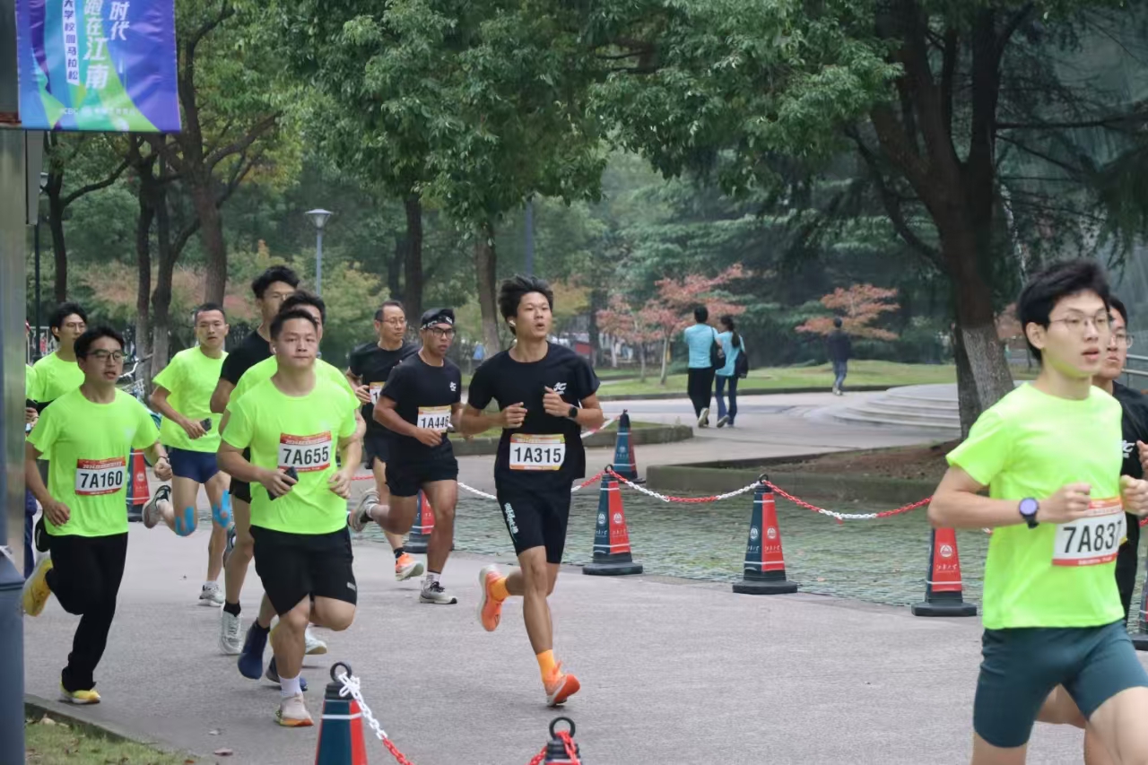 本次校园马拉松共设置“美丽江南”“至善江南”“江南同行”三大项目,赛事路线途经学校多个标志性建筑和景观,吸引了众多参赛者热情参与。选手们身着多彩的赛事服装,在校园内奋力奔跑,犹如一条条绚丽彩带,绘就了一幅活力多姿的江南画卷。葱郁的牡丹园、静谧的图书馆、粼粼的小蠡湖、巍巍的协同创新中心,此刻都成为这些江南跑者的见证。在尽享校园之美、感受江南底蕴之际,他们越跑越拼、越跑越远。赛道两旁,由各学院老师和同学组成的啦啦队热情洋溢、高声呐喊,为参赛者加油助威。医疗、安保、补给站等赛事志愿者也各司其职,为选手提供全方位的保障服务,同时在体育中心还设有体育嘉年华、主题合影等活动环节。在初冬的校园,这场马拉松赛事如同一场盛大的庆典,在奔跑中传递速度与力量、温暖与希望,展现着江南人对运动的热爱、对健康生活的积极追求和携手奋进的精神风貌。