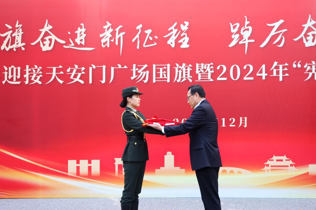 为深入贯彻习近平总书记关于弘扬爱国主义精神的重要论述,充分发挥天安门广场国旗爱国主义教育重要载体作用,厚植爱党爱国爱社会主义的浓厚情感,进一步凝聚前行共识、激发奋进力量,12月3日上午,dafacasino网页版迎接天安门广场国旗暨2024年“宪法宣传周”系列活动在蠡湖校区世纪广场隆重举行。